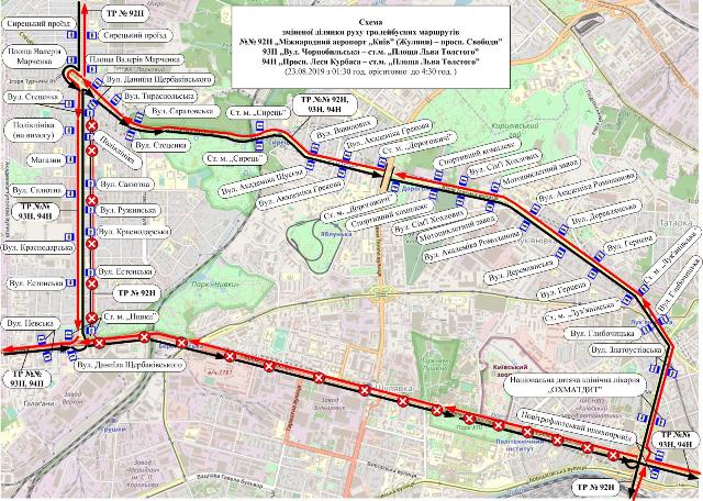 23 серпня буде змінено маршрут тролейбусів № 92Н, 93Н, 94Н (+ схема руху)