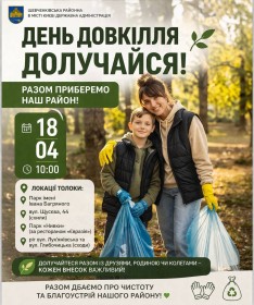 Разом працюємо над тим, щоб наш район залишався чистим, охайним і комфортним для життя. Локації проведення:• парк імені Івана Багряного;• вул. Щусєва, 44 (схили);