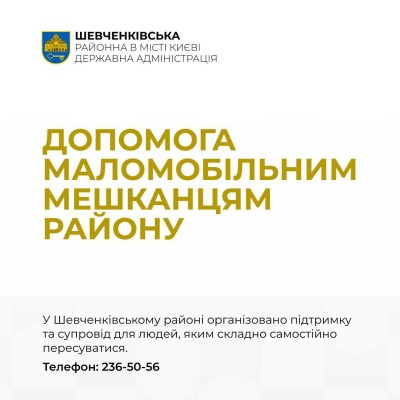 У Шевченківському районі підтримка маломобільних мешканців організована спільно Територіальним центром соціального обслуговування Шевченківського району з ДСНС, Національною поліцією та закладами охорони здоров’я. Така взаємодія дозволяє забезпечити безпечний супровід, транспортування та допомогу людям, які не можуть самостійно пересуватися, зокрема особам на візках і лежачим хворим, у тому числі зі спуском з поверхів.