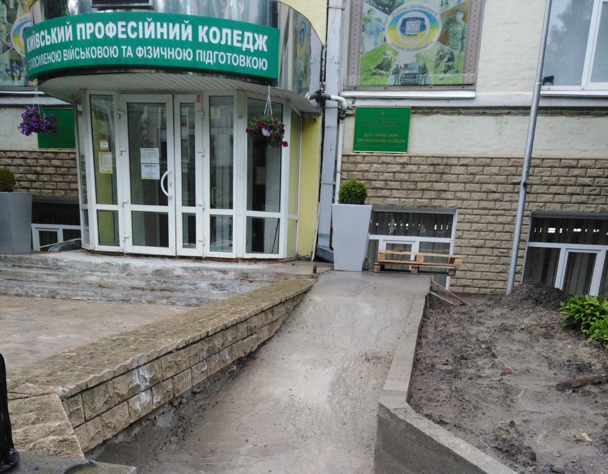 Так, у Київському професійному коледжі з посиленою військовою та фізичною підготовкою та Київському професійному енергетичному ліцеї триває облаштування пандусів. На це з бюджету міста було виділено 700 тис грн.