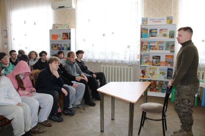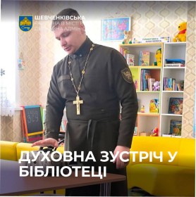 У бібліотеці імені Степана Васильченка відбулася зустріч старшокласників спеціалізованої школи №139 з поглибленим вивченням математики з військовим капеланом отцем Євгеном. Захід було присвячено річниці повномасштабного вторгнення російської федерації проти України та Національному дню молитви.