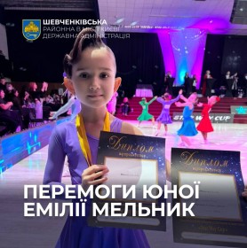 Шевченківська районна в місті Києві державна адміністрація щиро вітає Емілію Мельник, ученицю 2-А класу ліцею №38, з високими результатами на турнірі зі спортивних бальних танців Star Way Cup.