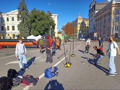 Команда з чирлідингу «Єноти» разом із керівником Дмитром Богодістом долучилася до святкування ESSD Ukraine 2025 на Контрактовій площі в рамках Європейського тижня