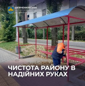 З метою підтримання належного санітарного стану на балансових територіях працівники служби з утримання вулично-дорожньої мережі КП ШЕУ Шевченківського району здійснюють щоденне прибирання зупинок громадського транспорту.