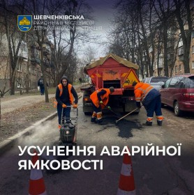 КП ШЕУ Шевченківського району проводить постійний моніторинг стану дорожнього покриття та оперативно реагує на випадки утворення аварійної ямковості. Роботи виконуються з метою недопущення появи небезпечних ділянок, покращення умов руху та підвищення рівня дорожньої безпеки.