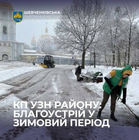 Шевченківська районна в місті Києві державна адміністрація дякує працівникам комунального підприємства за уважність, витримку та щоденну працю в непростих погодних умовах і закликає жителів бути обережними та зважати на зимові ризики.