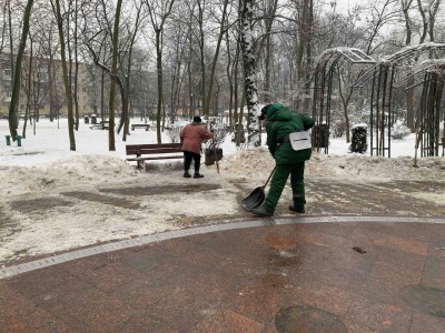 Зимова погода з перепадами температур потребує постійної уваги до безпеки пішоходів. У Шевченківському районі щоденно тривають роботи з догляду за пішохідними просторами та зеленими зонами.