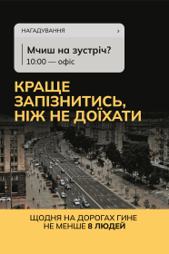 Саме тому, щоб запобігти смертям на українських дорогах внаслідок надмірної швидкості, яка є основною причиною смертності внаслідок ДТП, ЦЕДЕМ запускає всеукраїнську інформаційну кампанію «Краще запізнитись, ніж не доїхати».