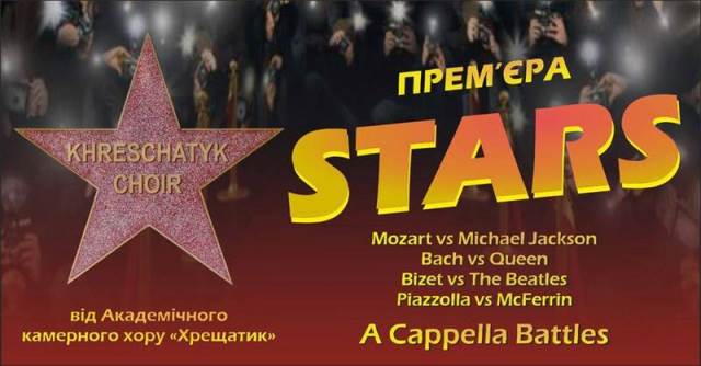 «STARS – A Cappella Battles» – нова концертна програма від Академічного камерного хору «Хрещатик», за мотивами визнаної класики, всесвітніх хітів, преміальних саундтреків і, навіть, гарячої попси. Щедре розмаїття шедеврів від зіркових авторів і яскравих аранжувальників, класичних і сучасних творів, різних за жанрами і формами, протиставлених в емоційних a cappella батлах, у манері академічної хорової мініатюри.