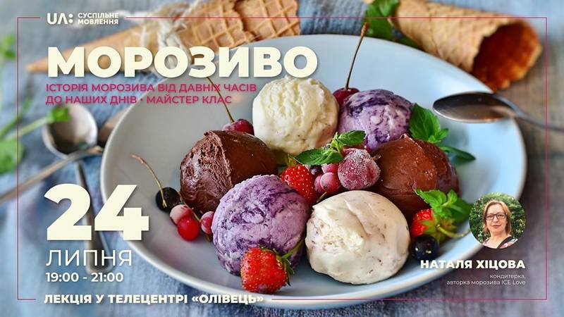 Разом із кондитеркою та авторкою морозива Морозиво ICE Love, ви дізнаєтеся історію створення найдавнішого та найпопулярнішого десерту в світі; особливості приготування, зберігання та сервірування морозива до відкриття електроенергії; а також приготуєте та скуштуєте натуральне та смачне морозиво.