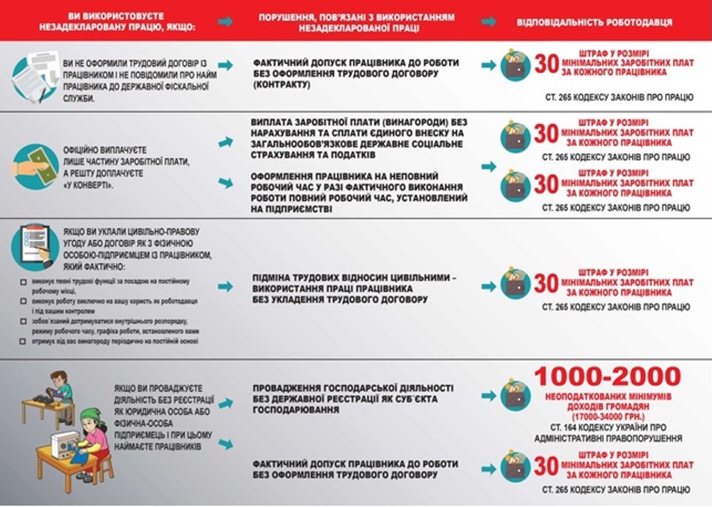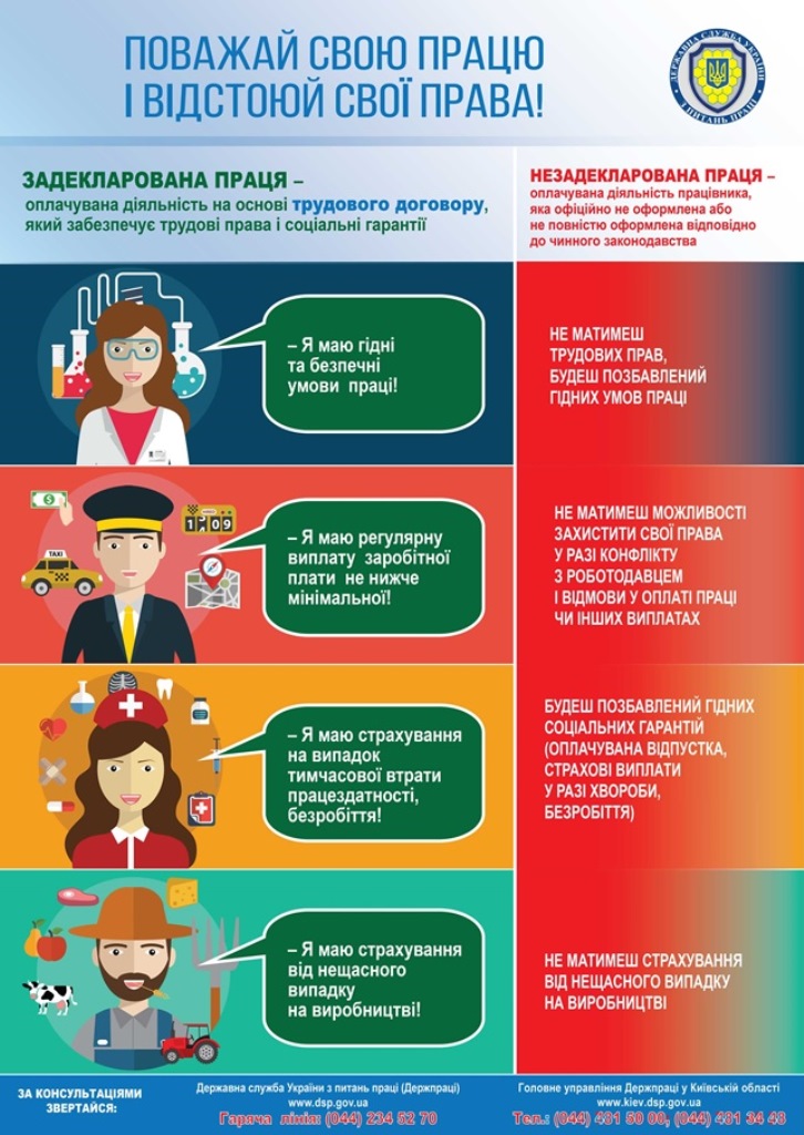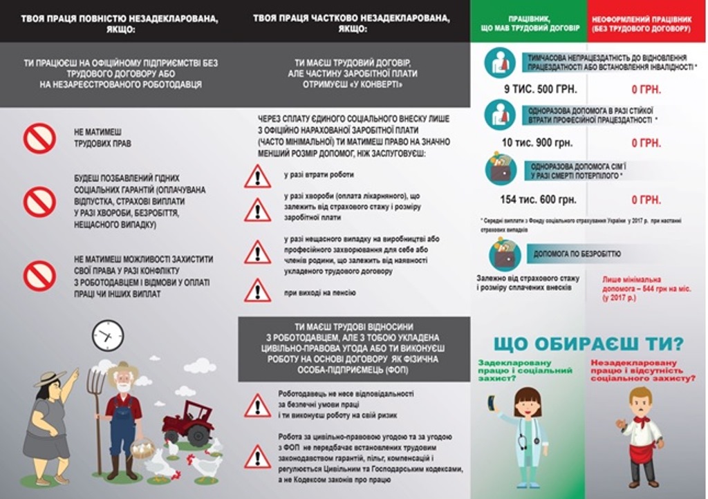 За даними Держпраці, в Україні близько 23% зайнятого населення працюють без належного оформлення трудових відносин. Відсутність належного соціального захисту, невиплата заробітної плати та регресивних виплат травмованим неоформленим працівникам спричиняє значне загострення соціального напруження в суспільстві. Тільки офіційне працевлаштування забезпечує гідні умови праці, достойну зарплату, належну пенсію працівника в майбутньому та добробут для України.
