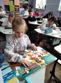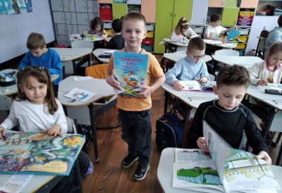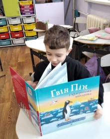 Для спільного читання обрали книгу Джулії Дональдсон «Гвін Пін і чудернацька мандрівка» — зворушливу історію про пінгвіна, який мріяв побачити Антарктиду та наважився вирушити у далеку подорож. Під час читання діти щиро співпереживали герою, раділи його успіхам і разом із ним долали труднощі. Після обговорення учні створили власні малюнки із зображенням відважного пінгвіна.