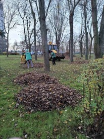 Тривають роботи зі згрібання та вивезення опалого листя на балансових територіях.