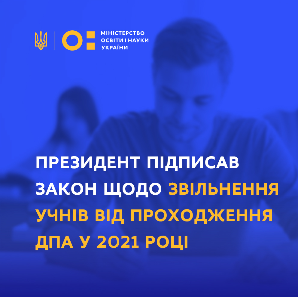 Президент підписав закон щодо звільнення учнів від проходження ДПА у 2021 році