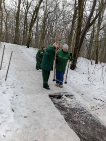 Паралельно проводиться очищення доріжок у парках і скверах з подальшою обробкою покриття фракційними матеріалами для безпечного та комфортного пересування відвідувачів.
