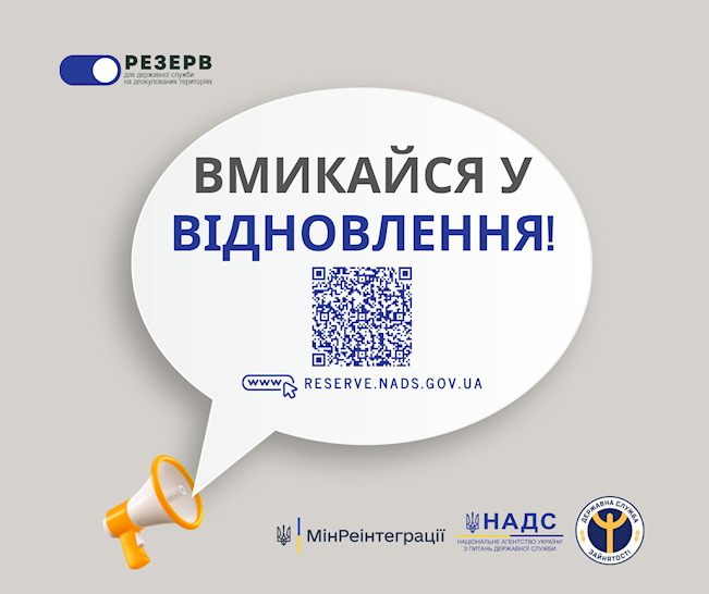 Додаткова інформація про реєстрацію в системі, подання анкети для до зарахування до резерву, процедуру працевлаштування, роботу з державними органами на деокупованих територіях є на сайті НАДС за посиланням: https://bit.ly/3PGgYnr.