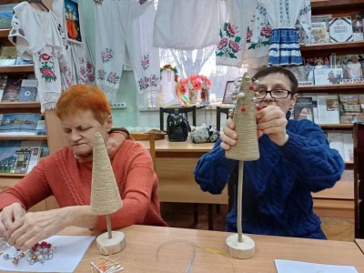 На арт-терапевтичному занятті під керівництвом пані Анжели читальна зала перетворилася на творчу майстерню, де з простих матеріалів народжувалися святкові ялинки.