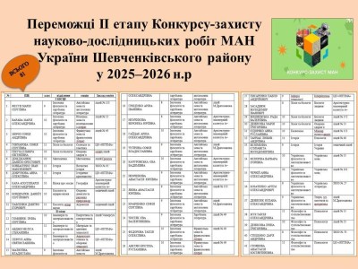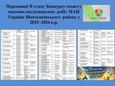 За підсумками ІІ етапу Конкурсу-захисту науково-дослідницьких робіт учнів-членів Малої академії наук України маємо вагомі здобутки 81 учасник став переможцем:
