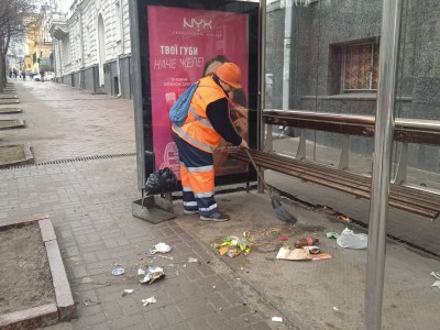 Важливою складовою цієї роботи є прибирання зупинок громадського транспорту.