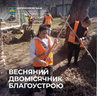 У Шевченківському районі міста Києва продовжуються роботи з благоустрою територій у межах весняного двомісячника.