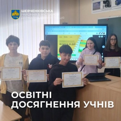 Восьмикласники разом із вчителькою фізики Ольгою Леонідівною Грімович здобули дипломи Всеукраїнського конкурсу «Фізика в дії: досліджуй, експериментуй, відкривай». Конкурс об’єднав юних дослідників з усієї країни та став майданчиком для сміливих ідей і практичних відкриттів.
